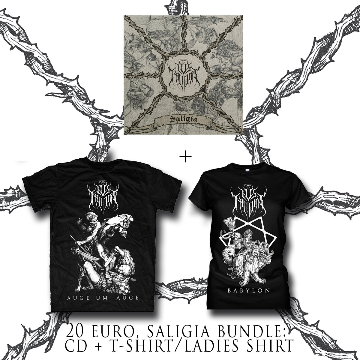 Saligias physical copy will be delivered as high quality Digipak with a ten-paged Booklet with illustrations and all the lyrics. The illustrations are made by Osculum Infame.